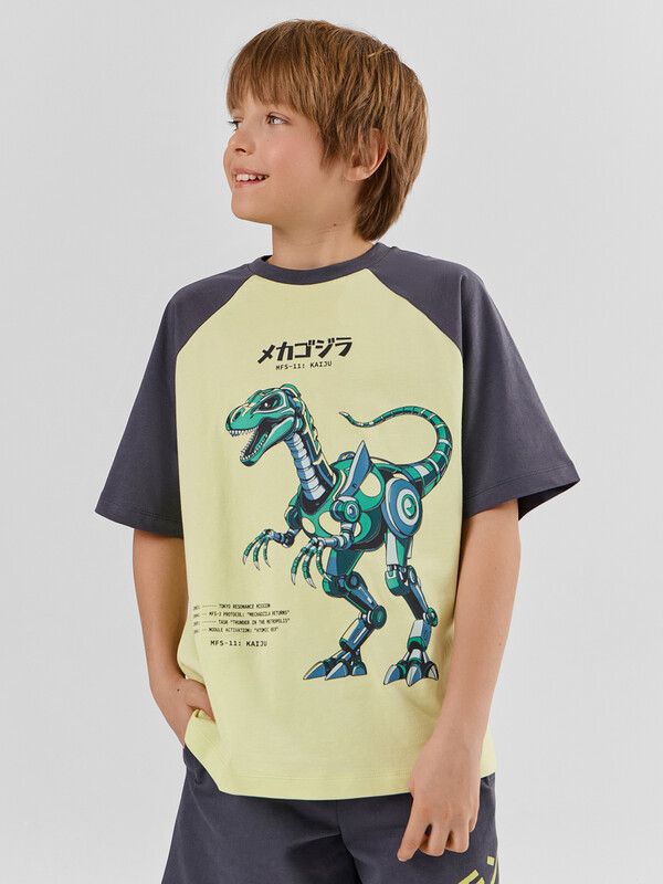Артикул: 113379-2 серый меланж 4306-А +динозавры на серо -зеленом 88739