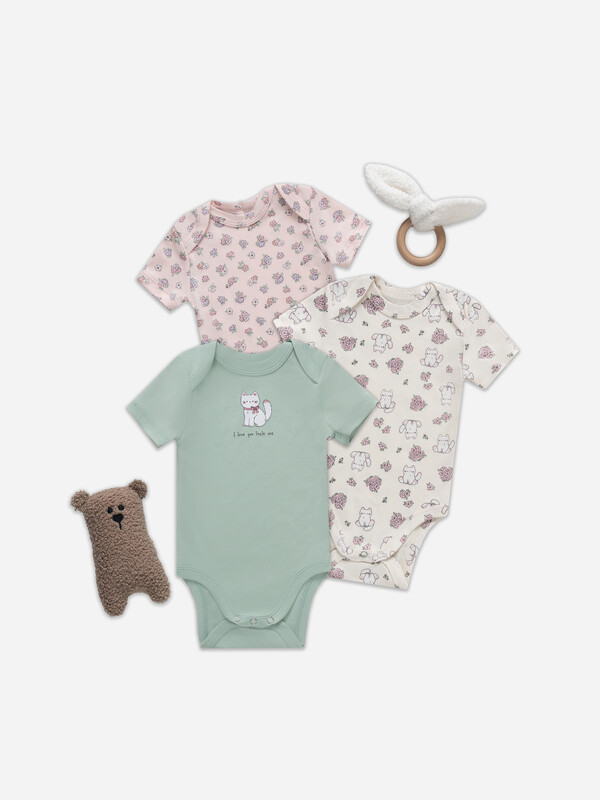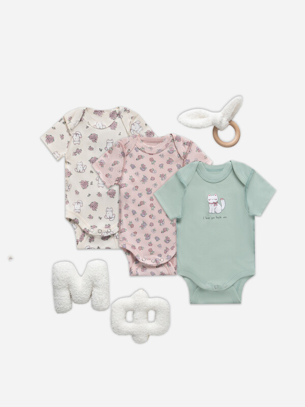 Артикул: 13015-1-3 котики с цветами на молочном +мята +цветочки на розовом 98060