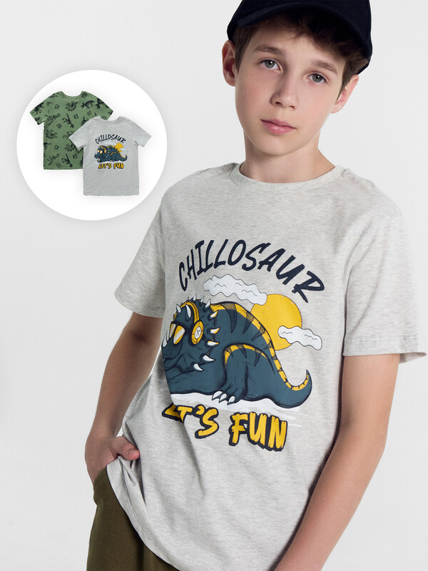 Артикул: 113379-2 серый меланж 4306-А +динозавры на серо -зеленом 88739