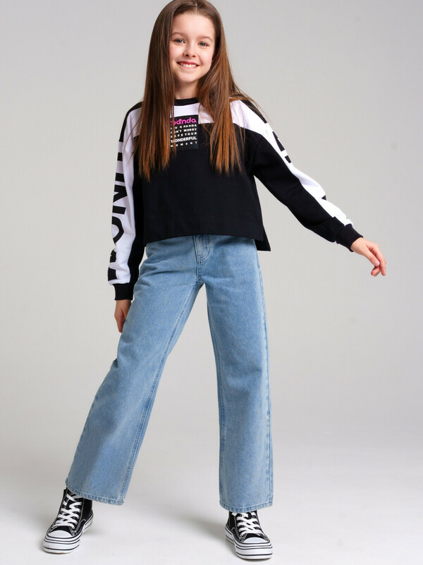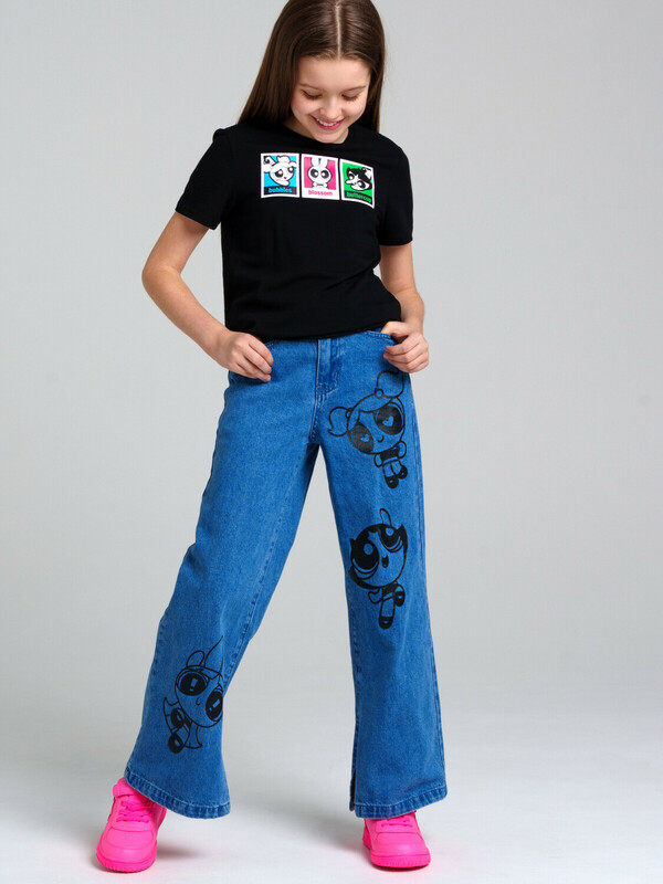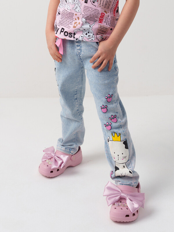 Брюки текстильные джинсовые для девочек