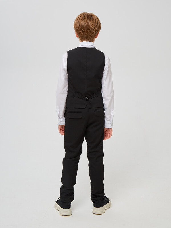 Классические брюки для мальчика из износостойкой и устойчивой к смятию костюмной поливискозы немного зауженные к низу с боковыми передними и прорезными задними карманами с клапаном, на втачном поясе с регулировкой и шлёвками. Отличный вариант на каждый день.