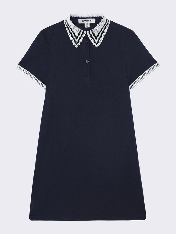 Элегантное платье для девочек станет отличным выбором для школы. Модель выполнена без подкладки, что обеспечивает комфорт и свободу движений. Трикотажное полотно придает изделию мягкость и легкость, идеально подходя для повседневной носки. Низ рукавов и воротник украшены кружевом, придающим изысканный вид. "