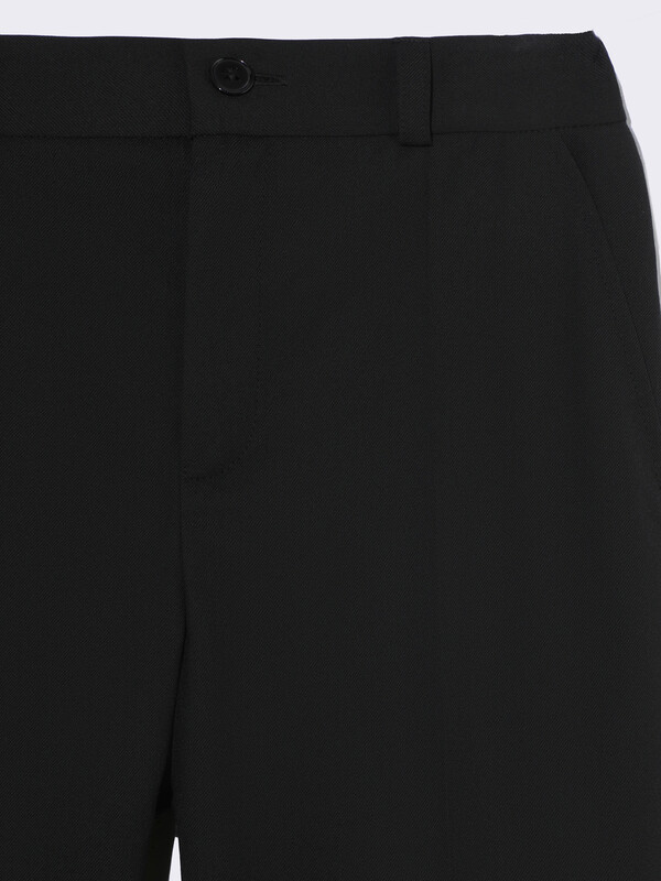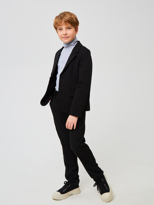Классические брюки для мальчика из износостойкой и устойчивой к смятию костюмной поливискозы немного зауженные к низу. На передней части брюк боковые карманы, заглаженные стрелки и застёжка - гульфик на молнии. На правой задней половинке брюк - карман с клапаном, на втачном поясе с регулировкой и шлёвками. Отличный вариант на каждый день.