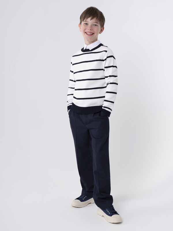 Стильные и практичные брюки со стрелками идеально подходят для школы. Изготовленные из ткани, состоящей из смеси искусственных и синтетических нитей, они обеспечивают комфорт в носке и долговечность. Застежка выполнена на удобную тесьму-молнию и дополнена петлей с пуговицей на поясе, что гарантирует надежную фиксацию.