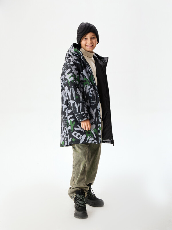 Куртка прямого силуэта в черно-белой трендовой расцветке с водонепроницаемым покрытием и мембраной. Утеплитель синтепон пластовой 200 гр/м2. Манжет из ткани "Soft Stretch"прочная внешняя поверхность и мягкий внутренний слой с велюровым ворсом. Температурный режим до минус 15 градусов. Изделие дополнено съемным объемным капюшоном и боковыми карманами, которые защитят от ветра и дождя в любую погоду. Застежка - на молнию закрыта ветрозащитной планкой на кнопках. Воротник - стойка, переходящая в капюшон. Доступна в 2 цветах.
