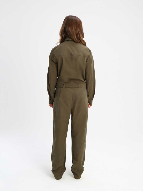 Комбинезон в стиле милитари — отличный вариант для тёплой весны и прохладного лета. Удобное лекало и свободный крой не сковывают движений. Натуральная ткань позволяет коже ребёнка дышать, отводит тепло и влагу от тела, создавая комфортный микроклимат. Комбинезон на пуговицах и с воротником-стойкой регулируется на талии, благодаря чему его можно приталивать или носить свободным.