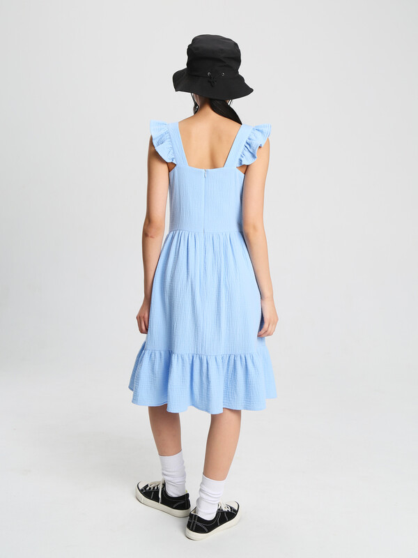 Сарафан для девочки из муслина — это легкий, мягкий и дышащий наряд, который идеально подходит для жаркой погоды.Легкое платье с открытыми плечами подойдет как для повседневного гардероба, так и для особых мероприятий. Благодаря бретелям-крылышкам и завязкам на спине образ получается очень нежным и оригинальным.