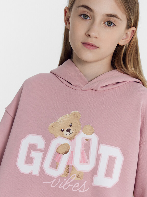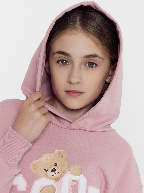 Комфортное расслабленное худи для девочек. Выполнено из легкого трикотажного футера. Прямой силуэт, длинные рукава на широких манжетах, уютный капюшон – ничего лишнего. Особый комфорт дарит спущенная линия плеча. Девочке наверняка понравится оформление этого худи.