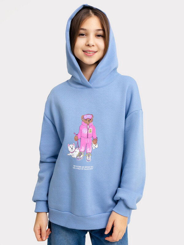 Анорак свободного силуэта, оверсайз. Плечо приспущено. Горловина округлой формы с капюшоном. Капюшон со средним швом и подкладкой из трикотажного кулирного полотна. Рукав свободный, длинный с отрезной манжетой из трикотажного полотна рибаны 2*2. В боковых швах, смещенных в сторону переда, обработаны карманы. По нижнему срезу притачной пояс из трикотажного полотна рибаны.