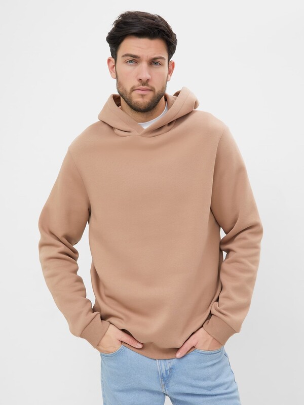 Мужское худи прямого силуэта, слегка посаженное на пояс. Выполнено из трикотажного футера с теплым подчесом. Горловина круглая, с уютным капюшоном, который спереди идет внахлест. Рукава длинные, на манжетах. Есть вместительный карман-кенгуру. Слегка спущенная линия плеча и немного углубленная пройма дарят свободу движений. Отличное худи для стильных образов!