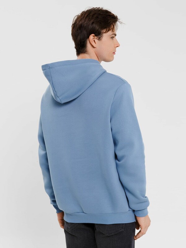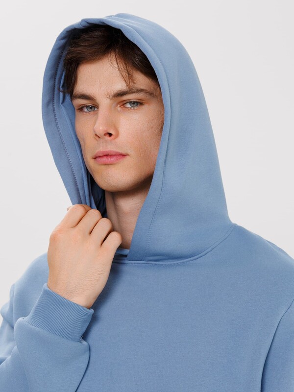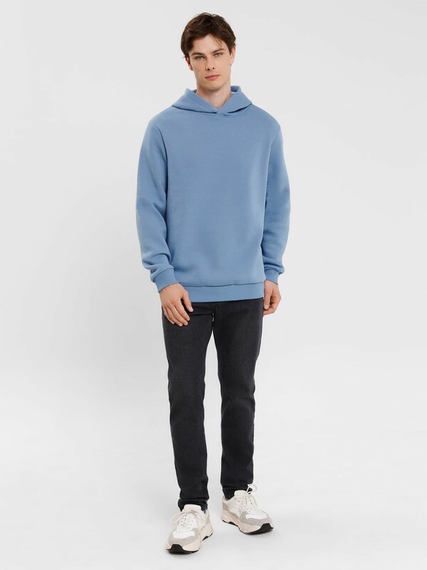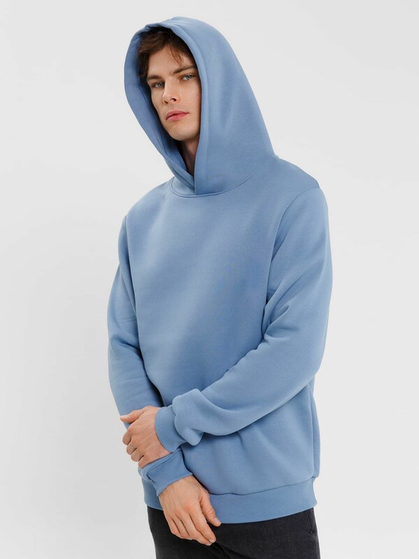 Мужское худи прямого силуэта, слегка посаженное на пояс. Выполнено из трикотажного футера с теплым подчесом. Горловина круглая, с уютным капюшоном, который спереди идет внахлест. Рукава длинные, на манжетах. Есть вместительный карман-кенгуру. Слегка спущенная линия плеча и немного углубленная пройма дарят свободу движений. Отличное худи для стильных образов!
