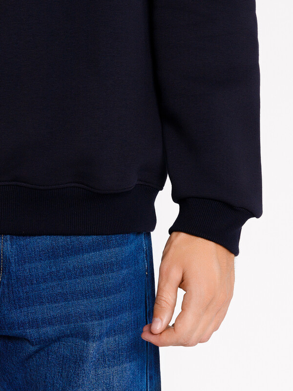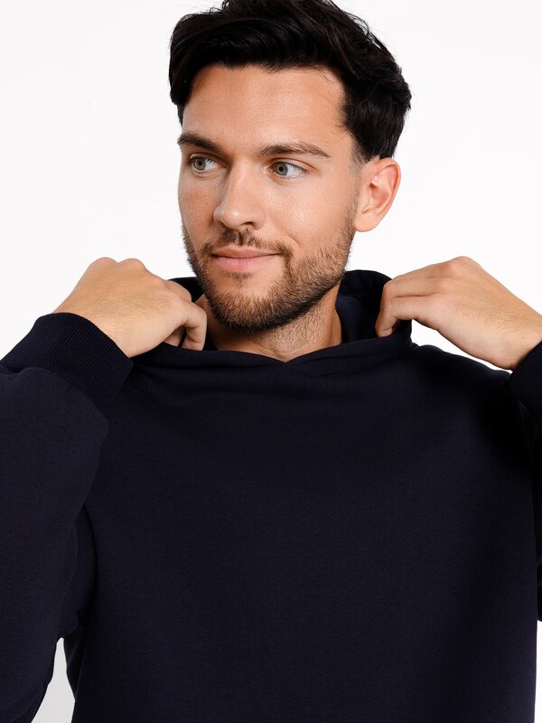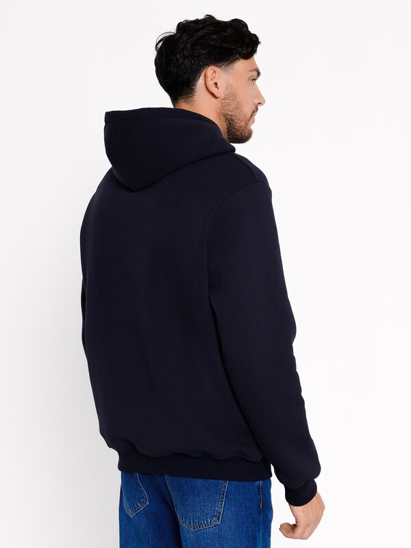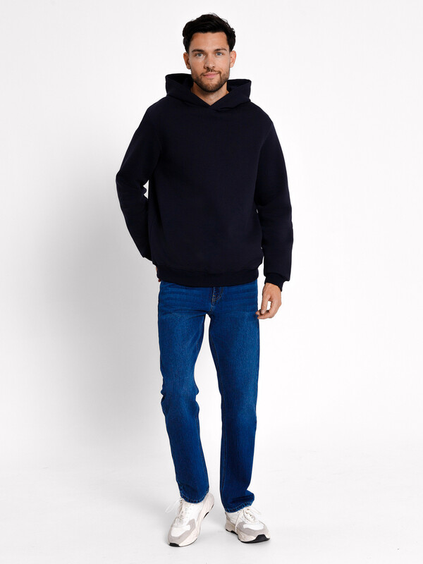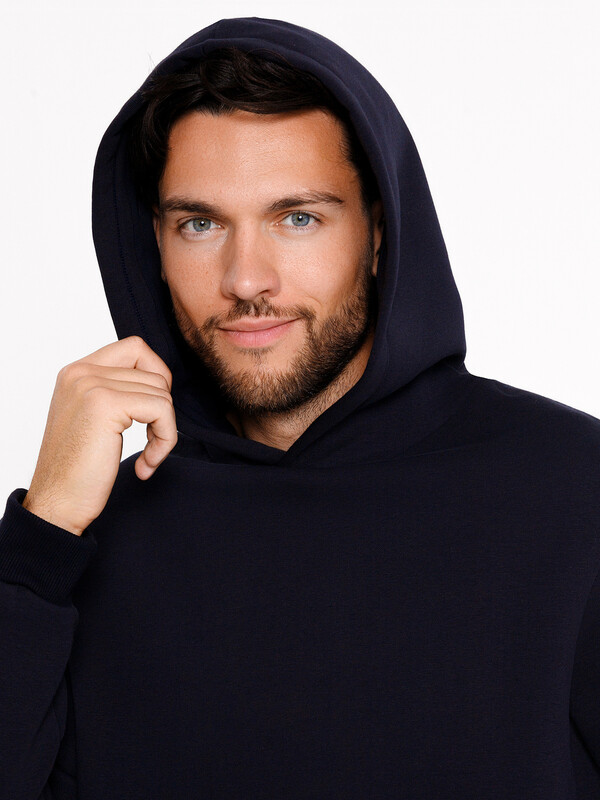 Мужское худи прямого силуэта, слегка посаженное на пояс. Выполнено из трикотажного футера с теплым подчесом. Горловина круглая, с уютным капюшоном, который спереди идет внахлест. Рукава длинные, на манжетах. Есть вместительный карман-кенгуру. Слегка спущенная линия плеча и немного углубленная пройма дарят свободу движений. Отличное худи для стильных образов!