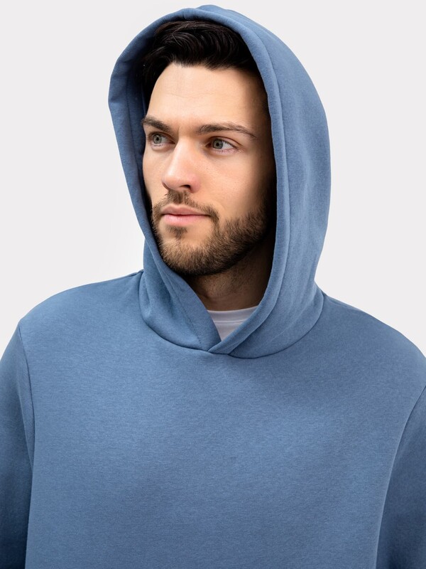 Мужское худи прямого силуэта, слегка посаженное на пояс. Выполнено из трикотажного футера с теплым подчесом. Горловина круглая, с уютным капюшоном, который спереди идет внахлест. Рукава длинные, на манжетах. Есть вместительный карман-кенгуру. Слегка спущенная линия плеча и немного углубленная пройма дарят свободу движений. Отличное худи для стильных образов!