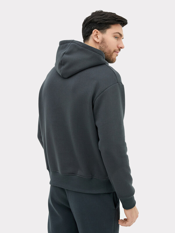 Мужское худи из трикотажного футера с теплым подчесом. Удобный карман-кенгуру, круглая горловина с капюшоном, длинные рукава на манжетах, спущенная линия плеча, пояс из рибаны – это худи удачно сочетает в себе комфорт, актуальный дизайн и качество!