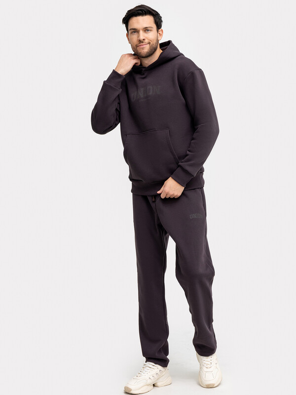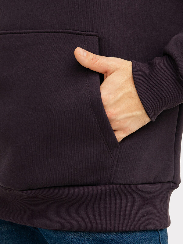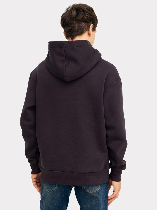 Мужское худи свободного силуэта из трикотажного футера с теплым подчесом. Круглая горловина с капюшоном, длинные рукава на манжетах, слегка спущенная линия плеча, пояс из рибаны – худи удачно сочетает комфортный дизайн и отличное качество!