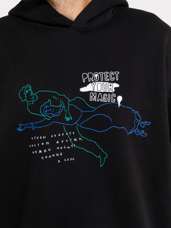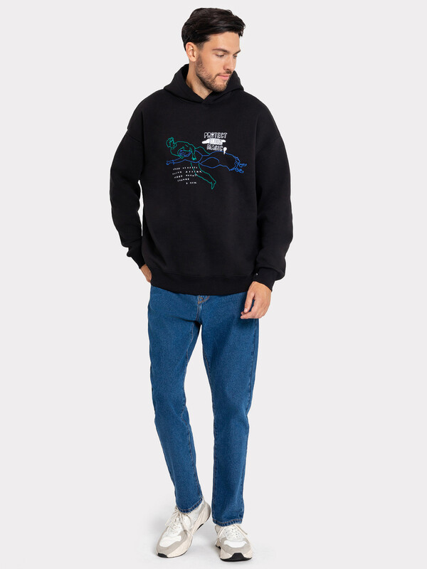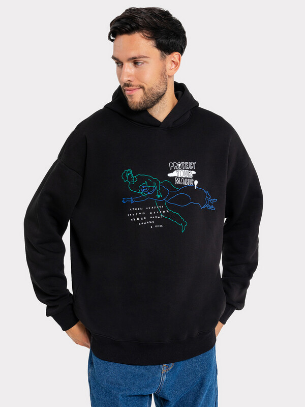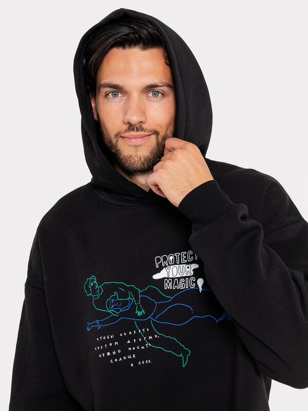 Худи мужское свободного силуэта из высокачественного хлопка. Материал изделия - футер с теплым подчесом. Удобный капюшон со шнурками-завязками, длинные свободные рукава на манжетах, стильный пояс по нижнему краю – ничего лишнего. Слегка спущенная линия плеча и немного углубленная пройма дарят свободу движений. Отличный вариант для создания стильных и лаконичных образов. Худи уже давно стало базовым элементом гардероба за свою универсальность и возможность сочетать его с большим количеством вещей. В нем комфортно и тепло, худи мужское с капюшоном лучший выбор мужской одежды на любое время года. Дополнить такое худи легко и просто стильным низом из нашей базовой линейки мужской одежды. Широкий размерный ряд, есть красивые цвета и варианты с интересными принтами. Купить худи мужское недорого можно у нас на сайте или в магазине Mark Formelle. Рекомендуем!