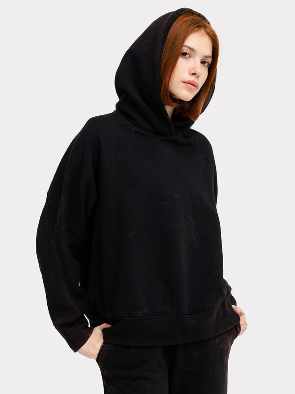 Базовое худи женское свободного силуэта из высококачественного хлопка. Материал изделия - нежный футер с подчесом. Вырез круглой формы, с уютным капюшоном. Рукава типа реглан, с широкими манжетами. Изюминкой худи является горизонтальный шов-членение на спинке и широкий свободный в нижней части. Худи женское с капюшоном имеет расслабленный силуэт. Если вам нужен базовый и универсальный вариант, который можно комбинировать со множеством вещей, тогда эта модель для вас. Стильное и удобное, в линейке широкий размерный ряд, такое худи женское подойдет на женскую фигуру любого типа. В линейке много разных расцветок, есть спокойные и яркие цвета, а также модели с интересными принтами. Отличное худи женское свободное для спортивных занятий, домашнего отдыха и прогулок. Купить худи женское недорого можно у нас на сайте или магазине Mark Formelle. Рекомендуем!