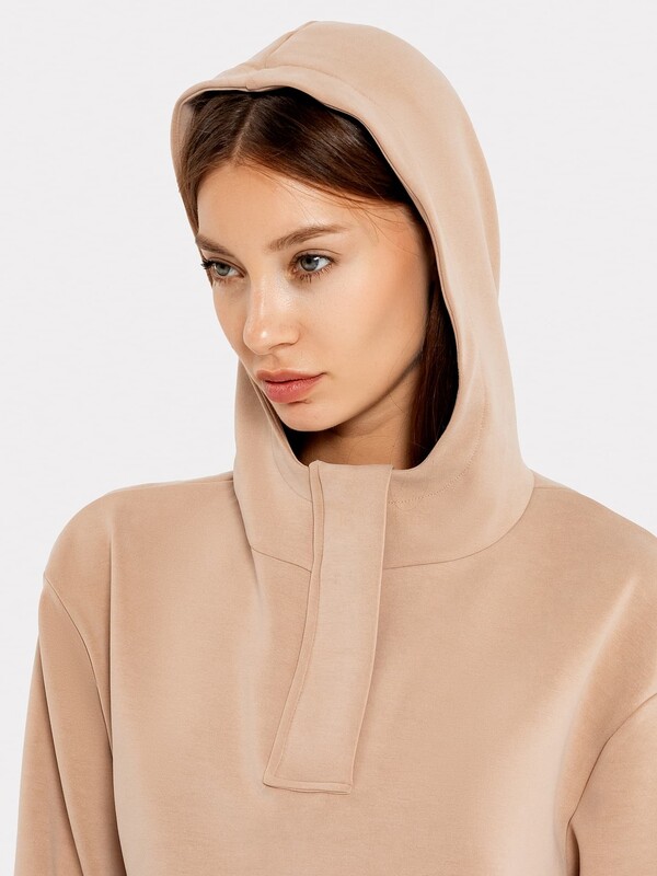Анорак изготовлен из трикотажного полотна интерлок.Анорак свободного силуэта с капюшоном.