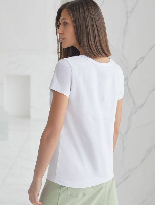 Стильная и модная женская футболка черного цвета станет отличным дополнением к вашему гардеробу. Футболка плотностью 170 Г/м2 изготовлена из премиального хлопка с добавлением эластана. Добавление эластана в состав изделия способствует формоустойчивости. Эта классическая футболка подходит для создания кэжуал образа на каждый день и идеально подойдет для работы. Модель не мнется, что делает ее практичным вариантом для активных женщин, которые ценят стиль и удобство. Благодаря однотонной расцветке эта футболка легко комбинируется с различными элементами гардероба. Она станет универсальным решением для тех, кто предпочитает комфортный стиль casual. Повседневная футболка подчеркнет вашу индивидуальность и позволит вам выглядеть привлекательно в любой ситуации. Легкость в уходе и высокая износостойкость делают ее незаменимой вещью в вашем гардеробе. Одевайте эту модель как на работу, так и на встречу с друзьями — она всегда будет уместна! Стильная и практичная модель с простым кроем и лаконичным дизайном - идеаль