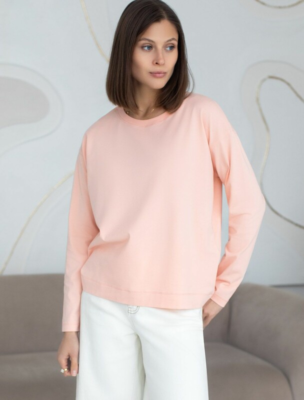 Главная страница - Каталог - Женская одежда оптом - Женская повседневная одежда - Женские джемперы, водолазки, толстовки - Базовый лонгслив из премиального хлопка с эластаном