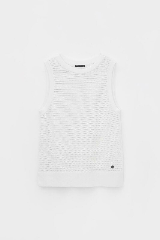 Вязаная ажурная майка. Состав 50% хлопок, 50% акрил. Благодаря акрилу в составе изделие не пилингуется.