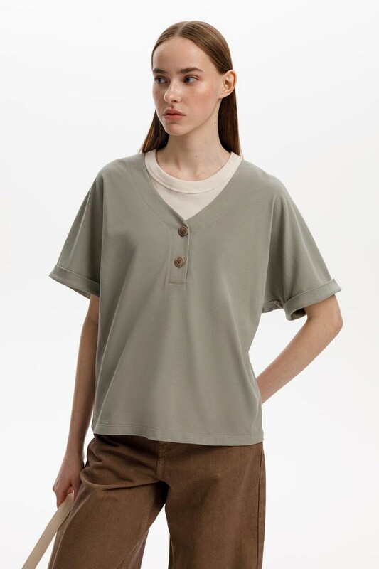 Трикотажная футболка с удлиненными рукавами изготовлена из легкого хлопка с рельефной текстурой пике. Широкие манжеты и V-вырез с пуговицами в тон изделия позволяют сочетать ее как с классическими, так и с более спортивными стилями.