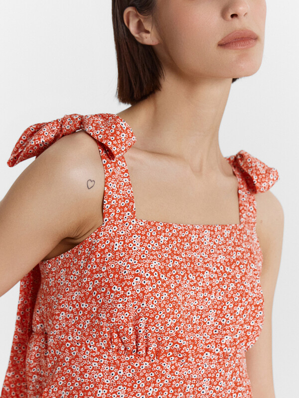 Этот нежный женственный топ — воплощение элегантности и романтичного стиля, идеально подходящий для летних образов. Широкие бретели, завязывающиеся в изящные банты, придают модели утонченность и позволяют регулировать посадку, создавая игривый акцент Лиф и спинка собраны на эластичную тесьму, что обеспечивает комфортную посадку и подчеркивает силуэт, делая его женственным и грациозным. Лиф на подкладке из основного полотна добавляет плотность и удобство, помогая сохранить форму и обеспечивая надежную поддержку. Нижний срез обработан швом вподгибку с закрытым срезом, что делает изделие аккуратным и долговечным, защищая ткань от износа. Выполненный из легкой и струящейся вискозы, топ мягко ложится на кожу, приятен в носке и обладает хорошей воздухопроницаемостью, позволяя чувствовать себя комфортно даже в жаркие дни. Благодаря универсальному дизайну, модель легко сочетается с юбками, брюками и джинсами, создавая стильные и утонченные образы. Этот топ станет незаменимым элементом летнего гардероба, добавляя нотки романтики и нежности в любой комплект!