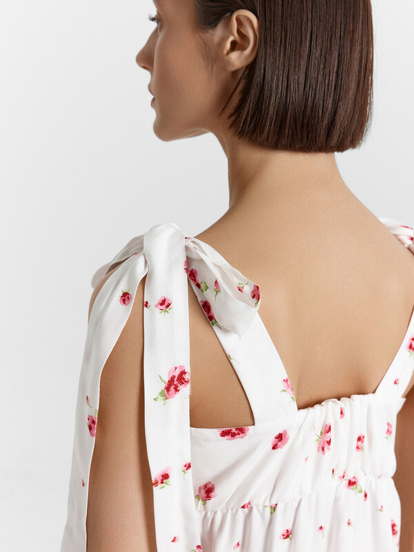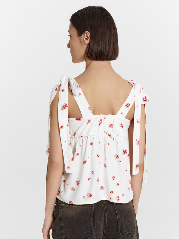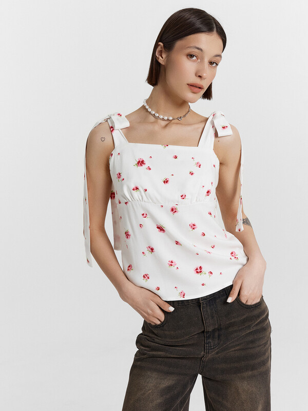 Этот нежный женственный топ — воплощение элегантности и романтичного стиля, идеально подходящий для летних образов. Широкие бретели, завязывающиеся в изящные банты, придают модели утонченность и позволяют регулировать посадку, создавая игривый акцент Лиф и спинка собраны на эластичную тесьму, что обеспечивает комфортную посадку и подчеркивает силуэт, делая его женственным и грациозным. Лиф на подкладке из основного полотна добавляет плотность и удобство, помогая сохранить форму и обеспечивая надежную поддержку. Нижний срез обработан швом вподгибку с закрытым срезом, что делает изделие аккуратным и долговечным, защищая ткань от износа. Выполненный из легкой и струящейся вискозы, топ мягко ложится на кожу, приятен в носке и обладает хорошей воздухопроницаемостью, позволяя чувствовать себя комфортно даже в жаркие дни. Благодаря универсальному дизайну, модель легко сочетается с юбками, брюками и джинсами, создавая стильные и утонченные образы. Этот топ станет незаменимым элементом летнего гардероба, добавляя нотки романтики и нежности в любой комплект!