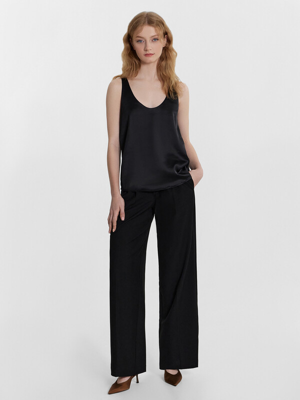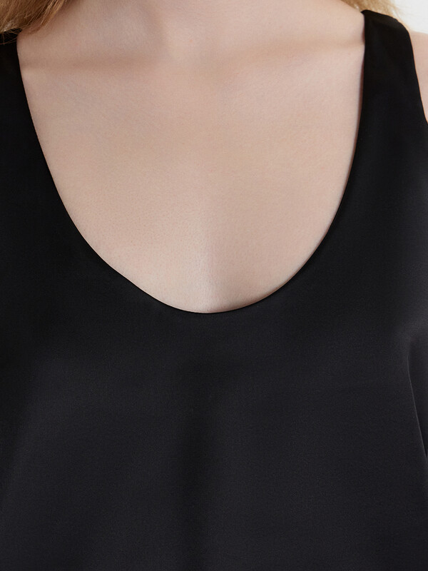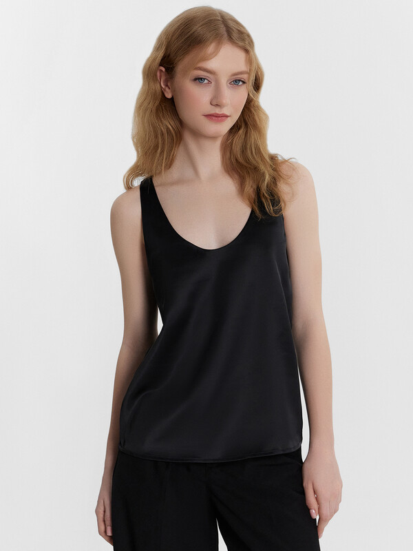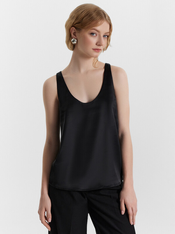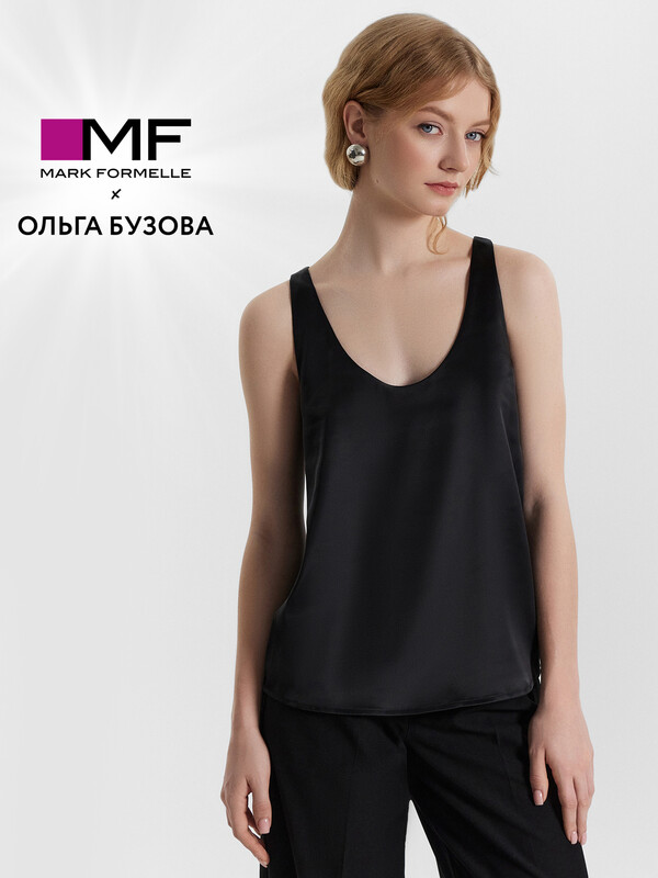 Элегантная блуза на узких бретелях – идеальный выбор для создания стильного и изысканного образа. Прямой, свободный силуэт и V-образная горловина придают модели утончённость и шарм. Перед и спинка на подкладке из основного материала обеспечивают комфорт и дополнительную плотность, а нижние срезы аккуратно обработаны швом вподгибку, что придаёт изделию завершённый вид. Блуза выполнена из прочного и приятного к телу струящегося материала, который красиво подчеркивает изящные линии фигуры. Этот материал не только отлично смотрится, но и дарит ощущение нежности и лёгкости при каждом движении. Такая блуза станет отличным дополнением вашего гардероба, подходящим как для повседневных образов, так и для особых случаев.