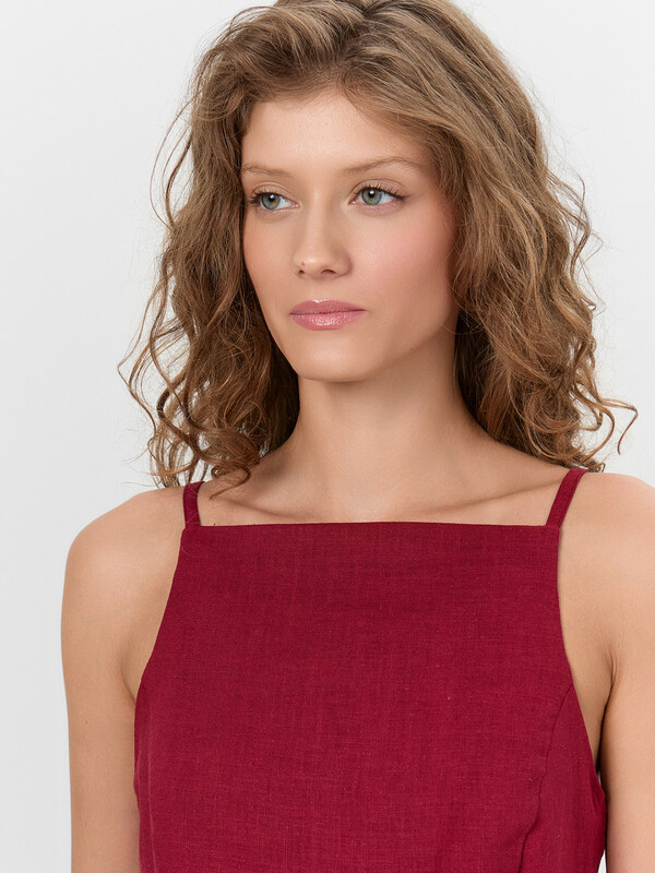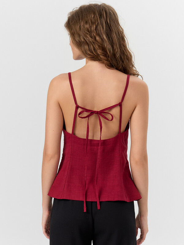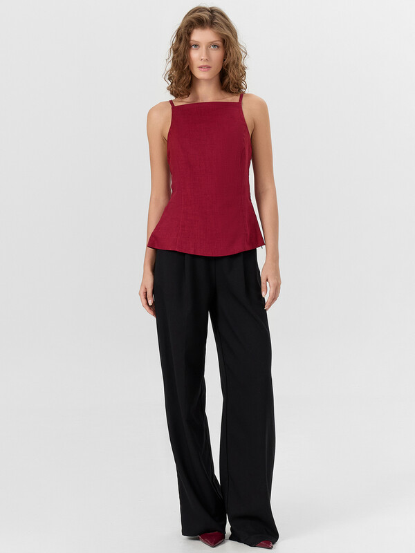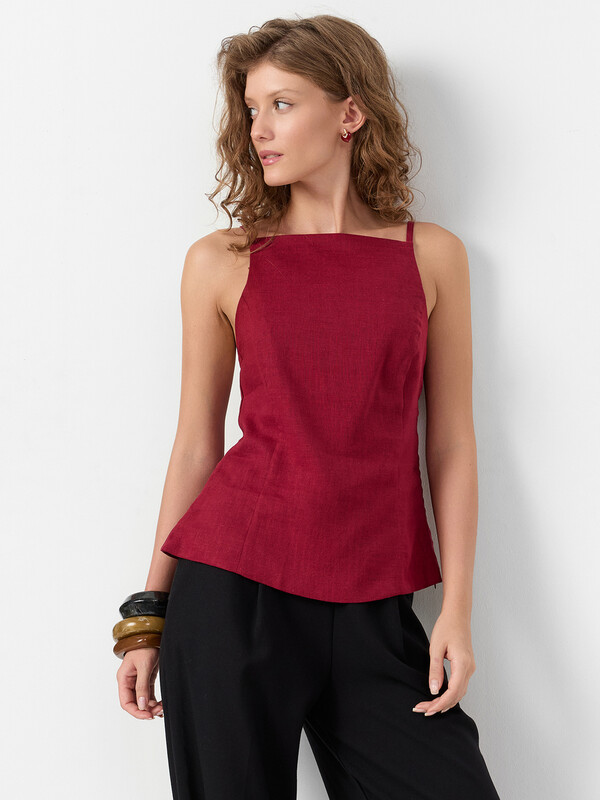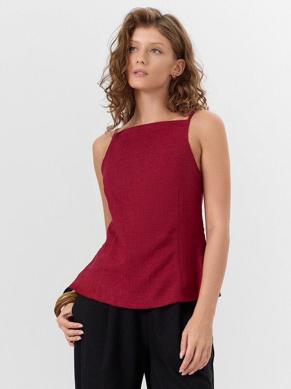 Женский топ с открытой спинкой — это изящная и эффектная модель, идеально подходящая для летнего гардероба или особых случаев. Полуприлегающий силуэт подчеркивает фигуру, оставаясь при этом комфортным в носке. Тонкие бретели придают образу легкость, а глубокий вырез на спинке делает акцент на женственности и утонченности. Изделие выполнено на подкладке из основного материала, что обеспечивает дополнительную плотность и аккуратную посадку. Потайная молния в боковом шве делает надевание удобным и сохраняет чистоту линий. Натуральные волокна рами и лиоцелла в составе ткани придают изделию приятную текстуру, воздухопроницаемость и легкий благородный блеск. Такой топ легко комбинируется с юбками, брюками или шортами, позволяя создавать как повседневные, так и вечерние образы.
