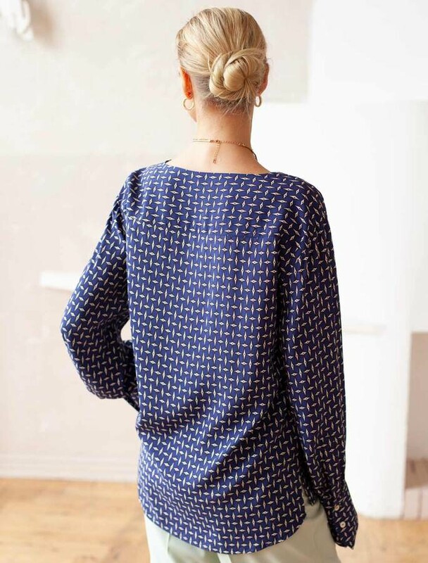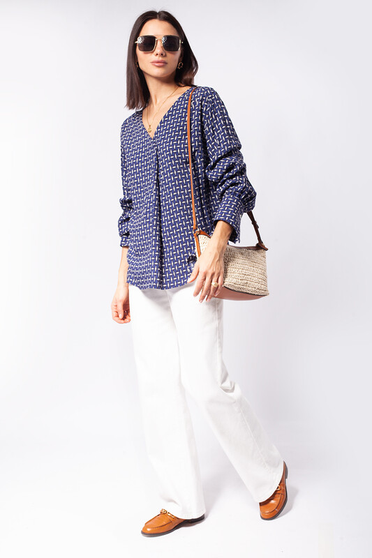 Блузка свободного кроя без застежки из лиоцелла с вискозой. Выполнена из премиальной вискозы с матовым блеском, как у натурального шелка. Крупный геометрический принт поддержан дизайнерскими манжетами. Изделие из легкого материала сохраняет безупречный вид в течение всего дня.