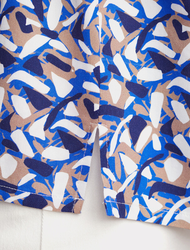 Блузка выполнена из 100% вискозного твила. Ткань приятно охлаждает кожу в жаркое время года. Идеально сочетается с белыми низами.