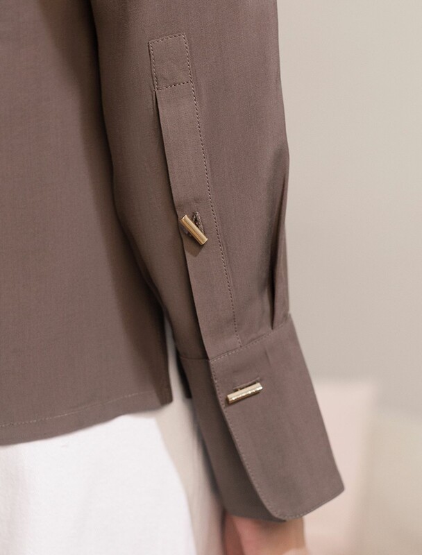 Блузка светло-оливкового цвета сочетает в себе комфорт и элегантность благодаря материалу из вискозы с лиоцеллом. Аккуратный отложной воротник подчеркивает утонченность образа, а продолговатые металлические пуговицы золотистого цвета добавляют выразительный акцент и придают блузке благородный вид. Широкие манжеты на рукавах привлекают внимание и делают силуэт современным. Спущенная линия плеча формирует расслабленный, но стильный внешний вид, что идеально для тех, кто ценит индивидуальность и уверенность в деталях. Крой продуман так, чтобы подчеркивать достоинства фигуры и на больших размерах, создавая гармоничный силуэт без лишних усилий. Ткань из вискозы с добавлением лиоцелла обеспечивает приятные ощущения и отличную посадку, струится на теле и охлаждает в жаркую погоду. Рубашка легко впишется как в деловой гардероб, так и в повседневный стиль, позволяя выглядеть безупречно независимо от ситуации.