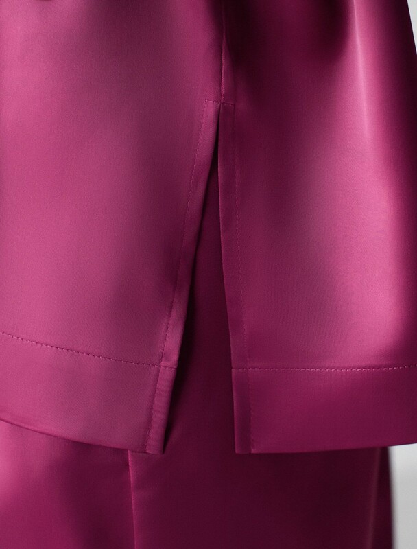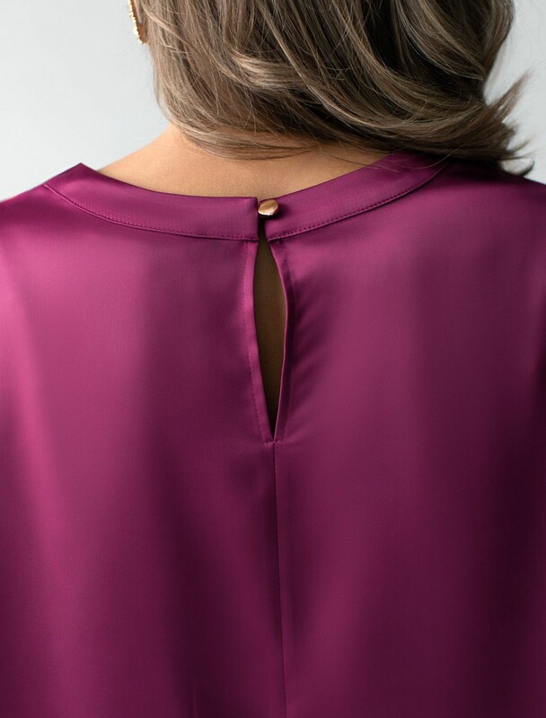 Блузка смотрится нарядно благодаря сочетанию мягкой текстуры сатина и его мягкого не вычурного блеска. Такая повседневная блузка легко впишется в деловой гардероб или станет отличны