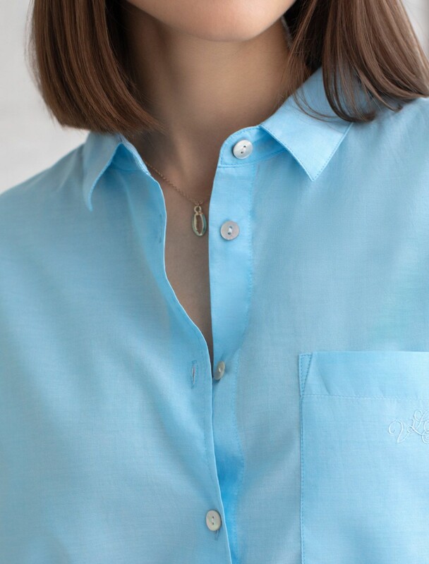 Свободная блузка светло-оливкового цвета с отложным воротником из хлопка станет отличным выбором для тех, кто ценит комфорт и стиль. Благодаря натуральной ткани, блузка приятная к телу и подходит для ежедневной носки. Материал — 100% хлопок — гарантирует хорошую воздухопроницаемость и ощущение свежести даже в жаркие дни. Удлиненный крой создает современный силуэт, который отлично смотрится в повседневных образах. Базовая модель легко впишется в любой гардероб и станет универсальным решением для самых разных случаев.Ткань держит форму после стирки, что делает уход за вещью простым и удобным. Карман на груди добавляет функциональности и делает образ более интересным. Натуральная структура материала не раздражает кожу, а сама блузка освежает внешний вид благодаря своему лаконичному дизайну и приятной расцветке.