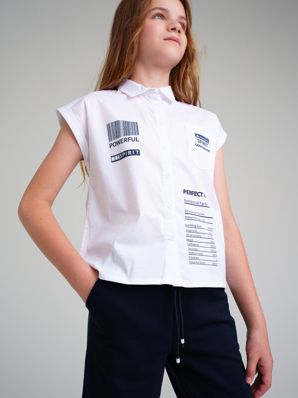 Блузка текстильная. Высокое содержание хлопка. Модель со спущенным рукавом. Застежка на пуговицы.