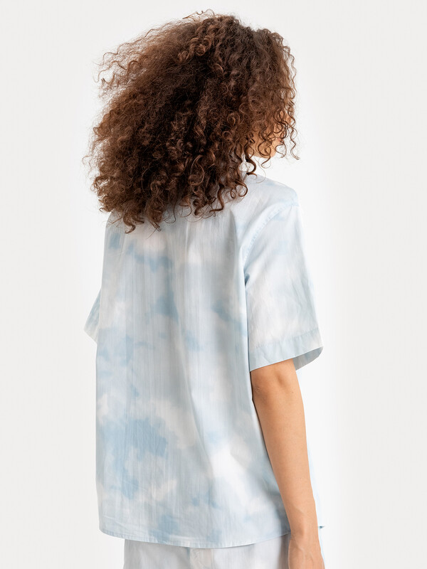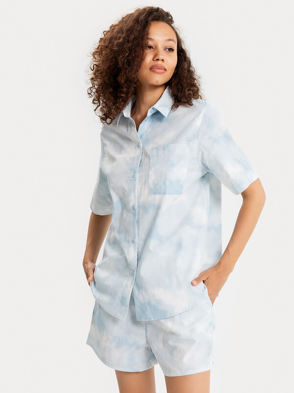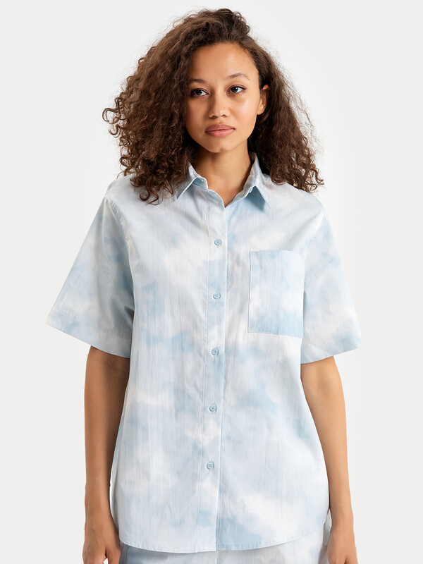 Блузка из текстильного хлопкового полотна. Блуза имеет прямой свободный силуэт, длину до линии бедер и фигурный низ. Линия плеча спущена – эта особенность кроя добавляет модели удобства. Вырез горловины – круглый, с рубашечным воротником. Рукава длиной до локтя. Застегивается на пуговицы. Спереди есть функциональный накладной карман. Рекомендуем!