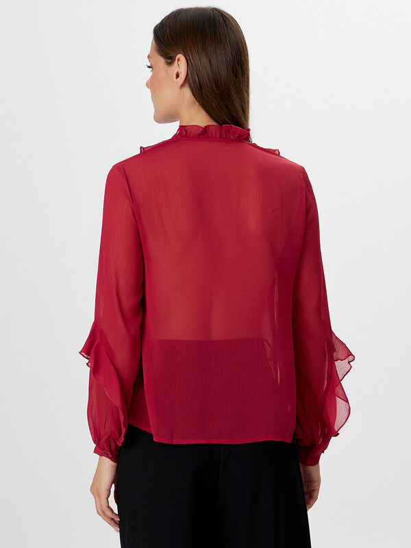 Женская бордовая полупрозрачная блузка— это элегантность и комфорт в вашем гардеробе. Модель выполнена из легкого полиэстера, который обеспечивает идеальную форму, устойчивость к сминанию и легкость в уходе.