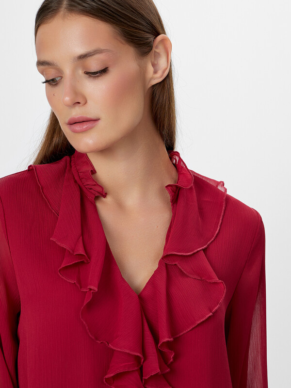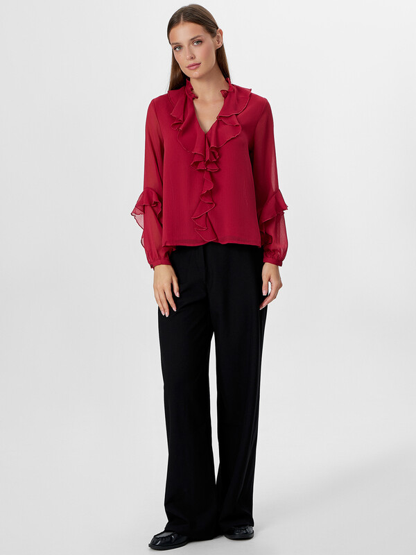 Если вы ищете, где купить женскую блузку, которая не мнется, сохраняет цвет и безупречно выглядит в течение всего дня, эта модель станет отличным выбором. Насыщенный бордовый цвет придает образу глубину и уверенность, а универсальный дизайн подходит для разных случаев.