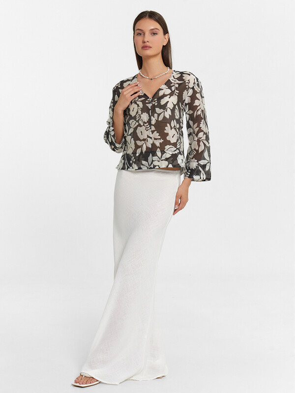 Женская блузка прямого силуэта — это сочетание элегантности, комфорта и практичности. V-образная горловина визуально вытягивает силуэт, подчеркивая линию шеи и декольте, а свободные длинные рукава и спущенное плечо придают образу расслабленную женственность. Разрезы в боковых швах добавляют легкости и свободы движений, делая модель особенно удобной в носке. Особое внимание заслуживает смесовый тенсель — материал, сочетающий в себе натуральность и технологичность. Он производится из древесной целлюлозы, отличается шелковистой текстурой, прекрасно дышит, обладает высокой гигроскопичностью. Благодаря добавлению других волокон, ткань становится более прочной, устойчивой к сминанию и износу, сохраняя при этом мягкость и струящуюся текстуру. Такая блузка подойдет как для офиса, так и для повседневных образов — легко сочетается с юбками, брюками или джинсами.