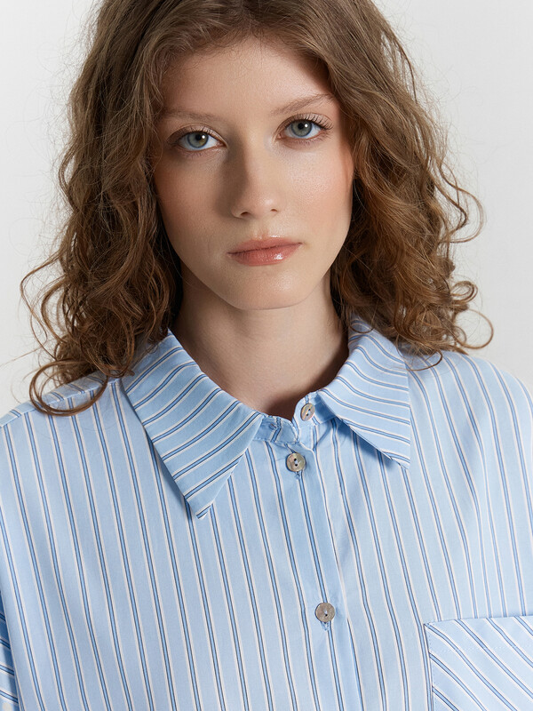 По переду центарльная застежкана на пуговицы 10мм. На левой передней детали накладной карман.