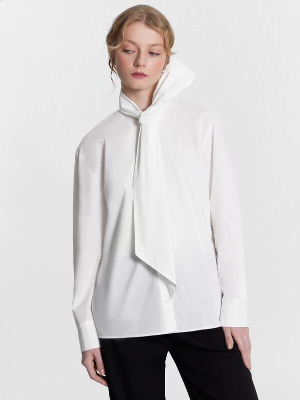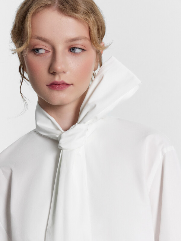 Женская блузка с воротником-бантом добавит вашему гардеробу нотку изысканности и оригинальности. Модель прямого кроя с длинными рукавами и застежкой на пуговицы спереди идеально подходит для создания стильных и утонченных образов. Изделие выполнено из нежного хлопка, который отличается мягкостью и дышащими свойствами. Натуральный материал прекрасно пропускает воздух, обеспечивая комфорт на протяжении всего дня. Хлопок также гипоаллергенен, что делает его идеальным выбором для чувствительной кожи. Сочетайте эту блузку с разными элементами гардероба, чтобы создавать неповторимые и стильные образы для любого случая. Ощутите комфорт и утонченную элегантность с этой великолепной блузкой!