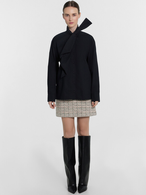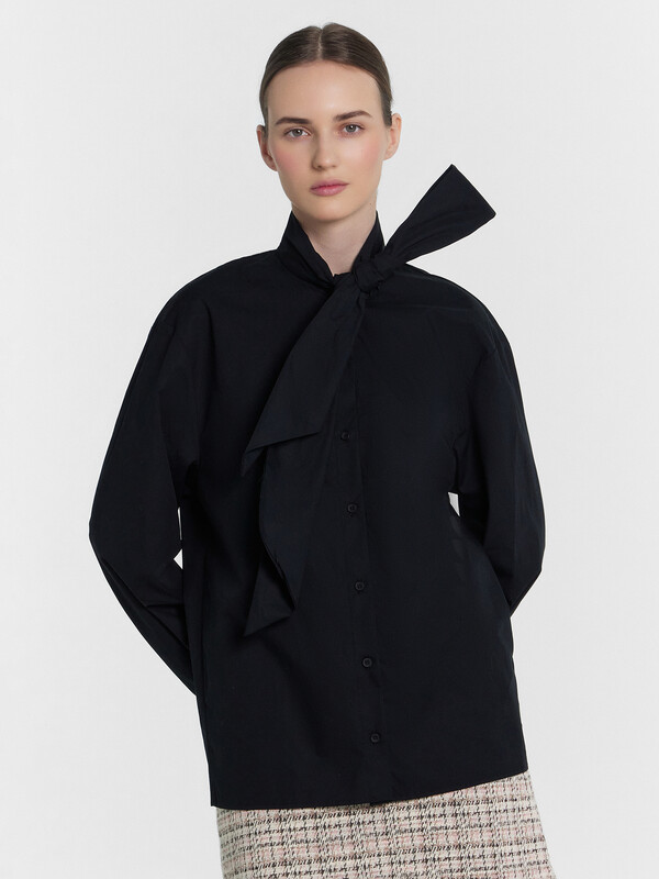Женская блузка с воротником-бантом добавит вашему гардеробу нотку изысканности и оригинальности. Модель прямого кроя с длинными рукавами и застежкой на пуговицы спереди идеально подходит для создания стильных и утонченных образов. Изделие выполнено из нежного хлопка, который отличается мягкостью и дышащими свойствами. Натуральный материал прекрасно пропускает воздух, обеспечивая комфорт на протяжении всего дня. Хлопок также гипоаллергенен, что делает его идеальным выбором для чувствительной кожи. Сочетайте эту блузку с разными элементами гардероба, чтобы создавать неповторимые и стильные образы для любого случая. Ощутите комфорт и утонченную элегантность с этой великолепной блузкой!