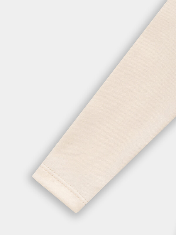 Рукава длинные, втачные, одношовные. Низ рукавов обработан на 2х игольной плоскошовной машине швом в подгибку. Юбка двухслойная на сборке. Верхний слой выполнен из трикотажной сетки Me-22 (Me-006.01.25), 100% полиэстер, 153 см, 25 гр/м? . Нижний слой из основного полотна интерлок. Нижние края боди по середине фиксируются на книпперы 9 мм- 2 шт