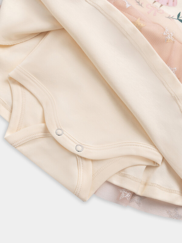 Боди детское c отрезной юбкой выполнено из интерлока. Спинка и перед цельнокроенные.