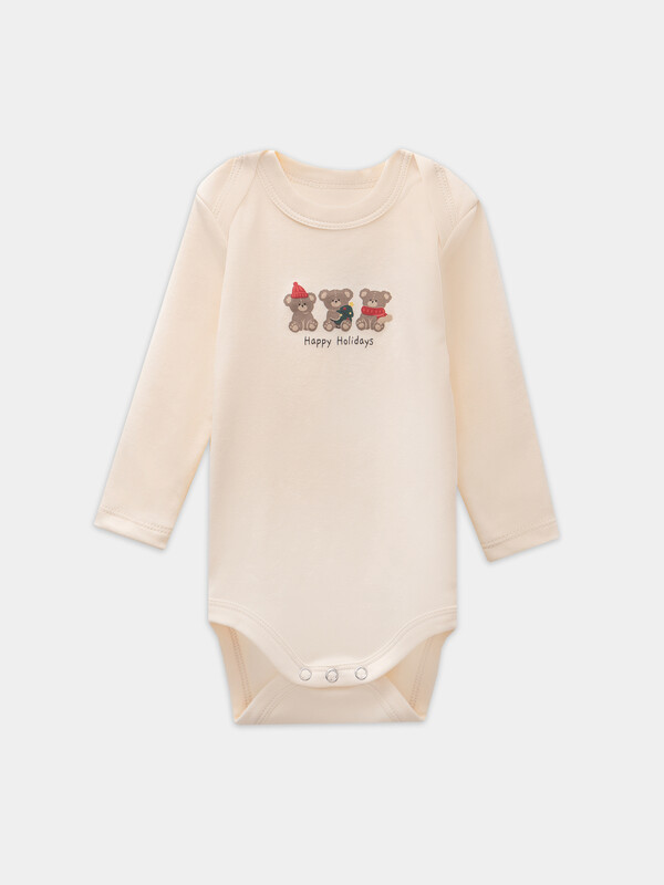 Круглая горловина с аккуратной бейкой из основного материала сохраняет форму даже после многочисленных стирок. Длинные рукава создают дополнительную защиту и уют, особенно в прохладное время года. Удобные застежки-кнопки по центру позволяют легко переодевать ребенка, не нарушая его покой.