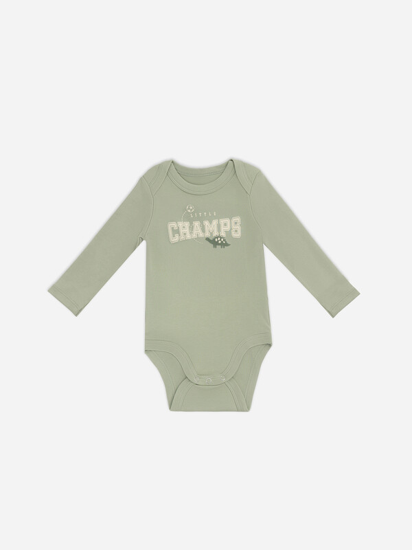 Круглая горловина с аккуратной бейкой из основного материала сохраняет форму даже после многочисленных стирок. Длинные рукава создают дополнительную защиту и уют, особенно в прохладное время года. Удобные застежки-кнопки по центру позволяют легко переодевать ребенка, не нарушая его покой.