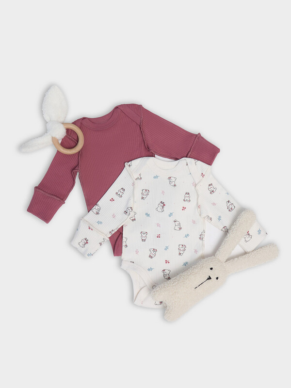 Артикул: 13018-1-2 зайчики на зв.белом +дымчатая роза 1050