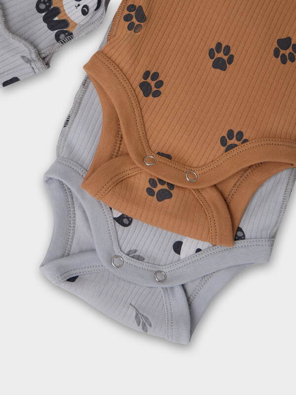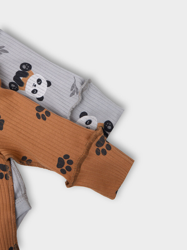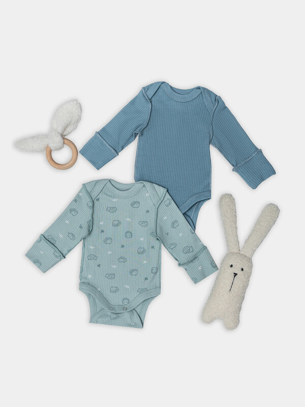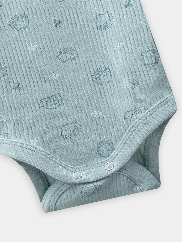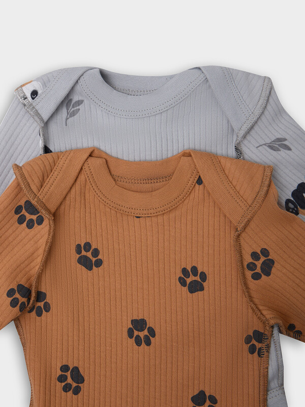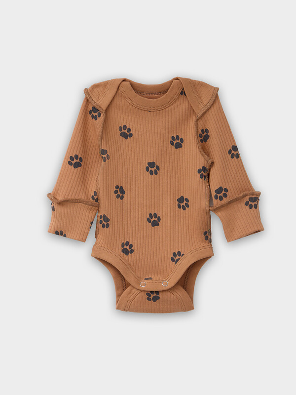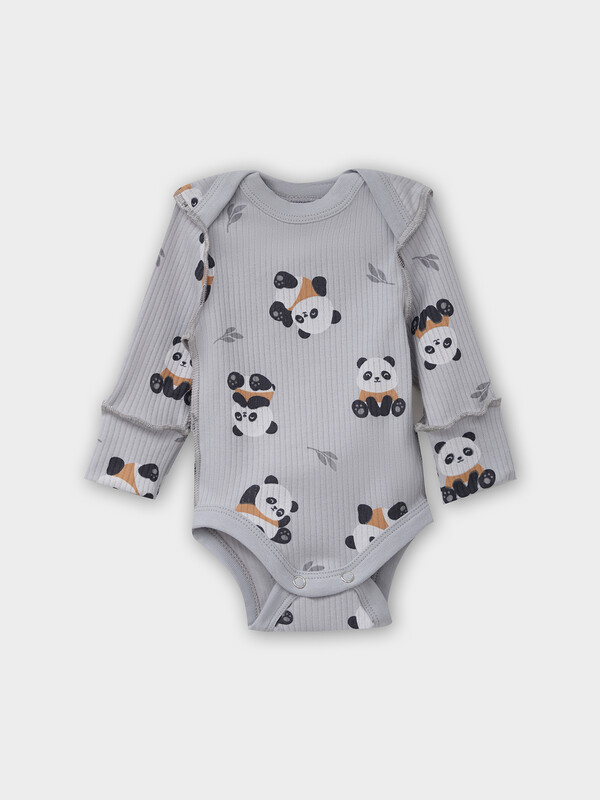 Круглая горловина и все срезы аккуратно окантованы мягкой бейкой, которая нежно прилегает к телу. Длинные рукава с защитными «царапками» надежно закрывают ручки малыша, предотвращая случайные царапины.
