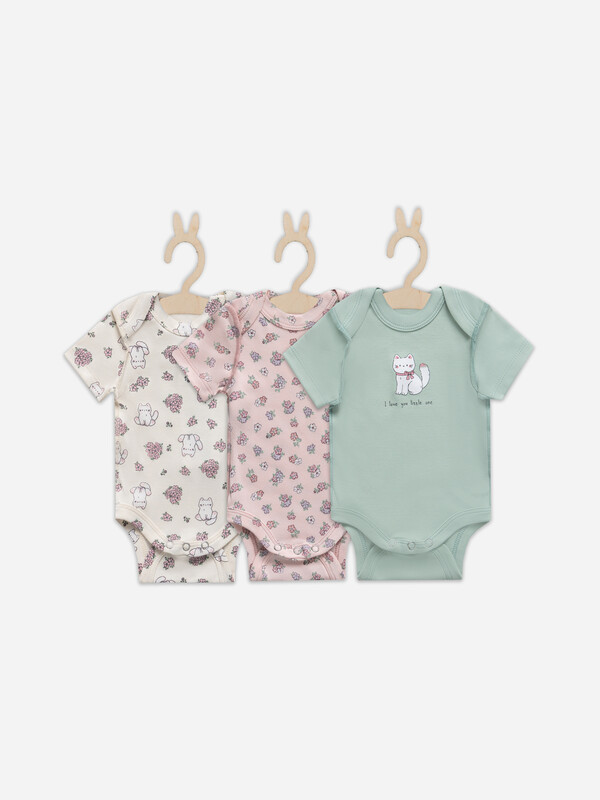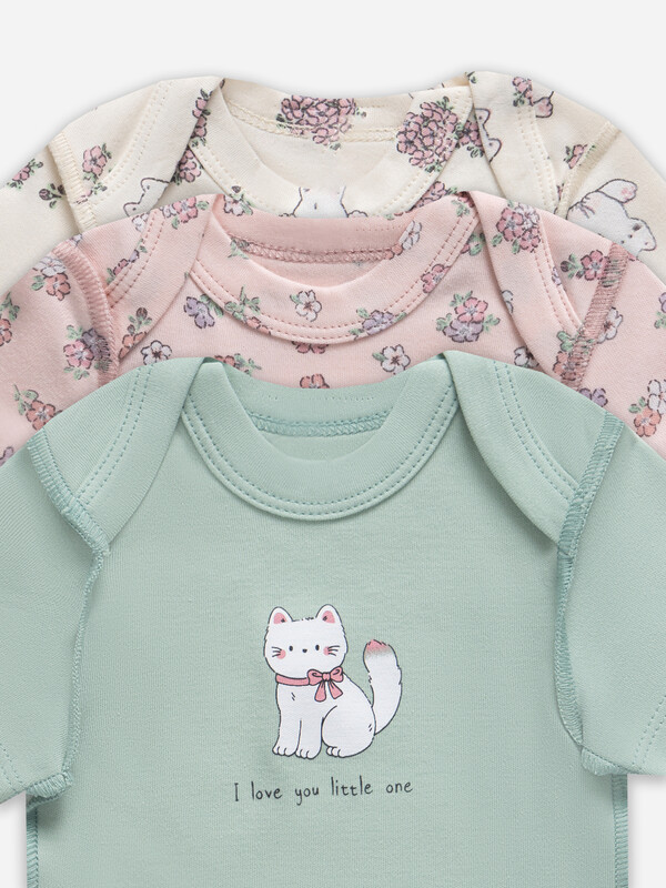 Артикул: 13015-1-3 котики с цветами на молочном +мята +цветочки на розовом 98060